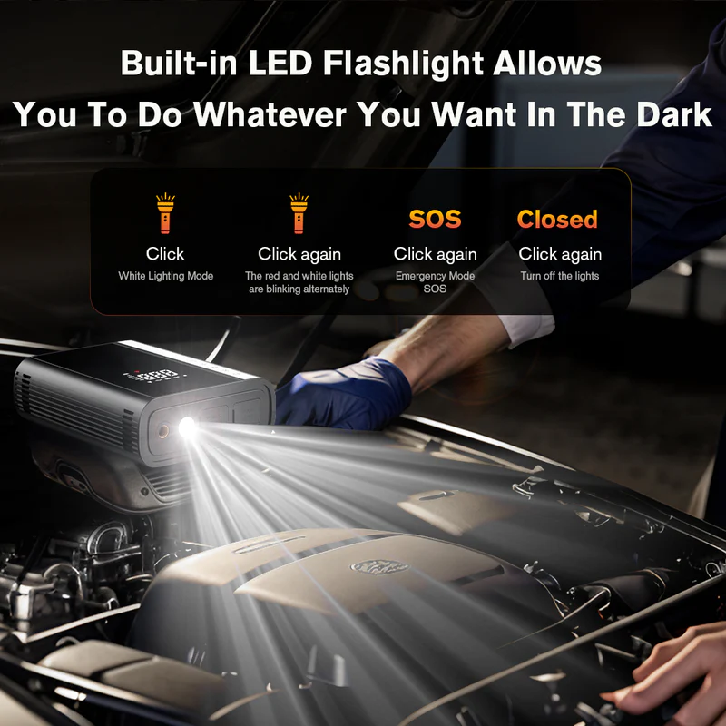 - Reliable Jump Starter: Provides the boost needed to start your car in emergencies.