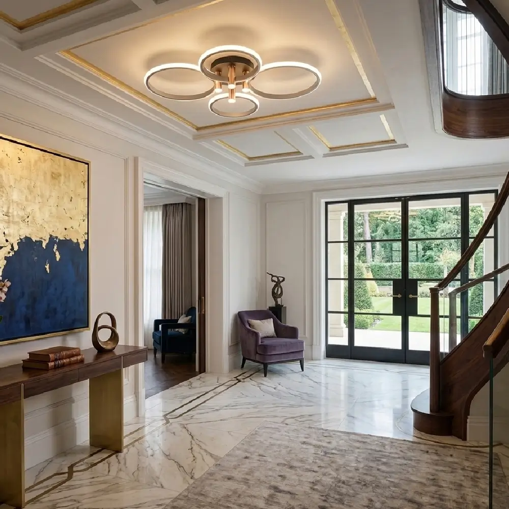 The 4‑Ring Flush Mount Ceiling LED Light combines contemporary design with functional efficiency. Its geometric ring layout creates a unique visual effect, while the integrated LED technology ensures long lifespan, low energy consumption, and uniform brightness.